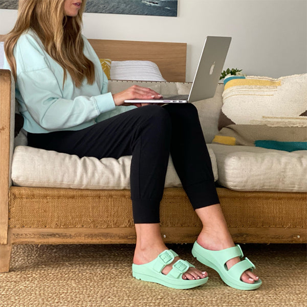 This beautifully designed sandal has an anatomically correct footbed and is offered in four colours. With a slight wedge and adjustable straps, it can be dressed up or dressed down. It is contoured to support the arches of your feet and has a deep heel cup with great medial arch and metatarsal support. This is an excellent sandal for people who love arch support and cushioning, yet want something a little dressier than a flip flop